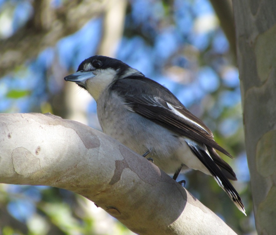 Noticed a Fan-tailed Cuckoo Cacomantis pyrrhophanus busy wiping a fat juicy caterpillar on a branch to remove the irritating hairs. I grabbed the camera to get a shot and just as I am getting the focus set, a Grey Butcher Bird Cracticus torquatus swooped down with the idea of snatching the caterpillar. The cuckoo wasn't waiting around thinking it might be on the menu, so decided to drop the caterpillar to create a diversion. The butcher bird however, only interested in the caterpillar landed on the branch and then spent a few futile minutes trying to find the caterpillar, without success, so both birds missed their meal and the caterpillar got to live a another day minus some hairs.